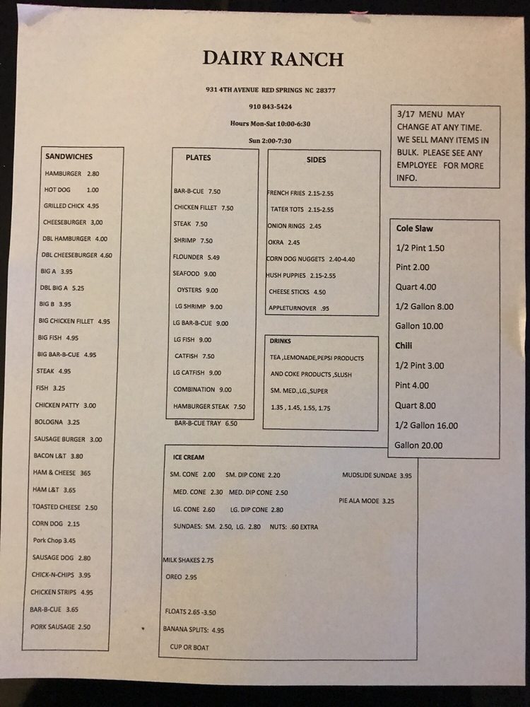 Welcome to Dairy Ranch Red Springs, a beloved culinary gem nestled in the heart of Red Springs, North Carolina. Located at 931 E 4th Ave, this charming eatery has been a staple in the community, serving up mouthwatering meals that capture the essence of home-cooked comfort food.